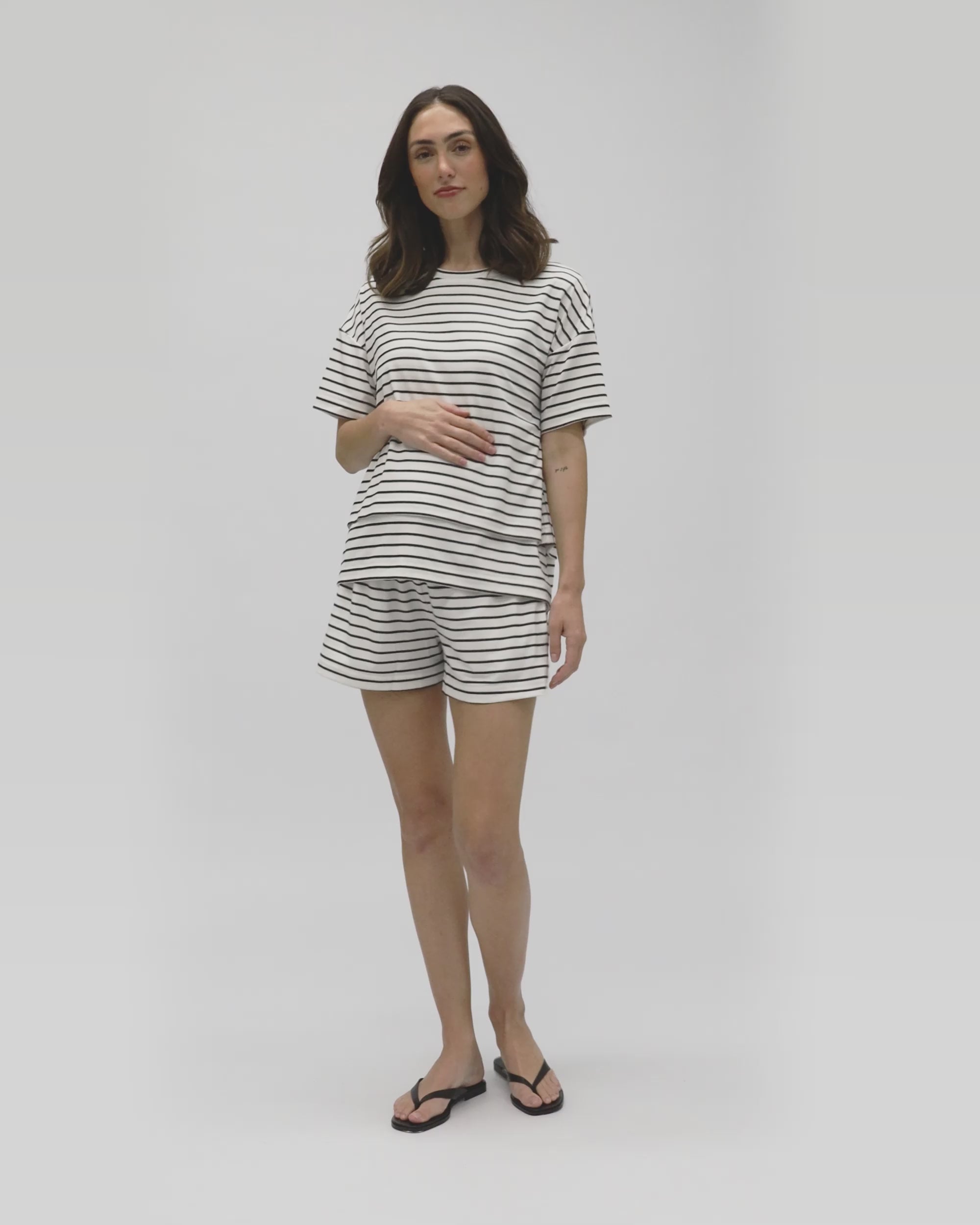 Jada Stripe Nursing Tee White / Black